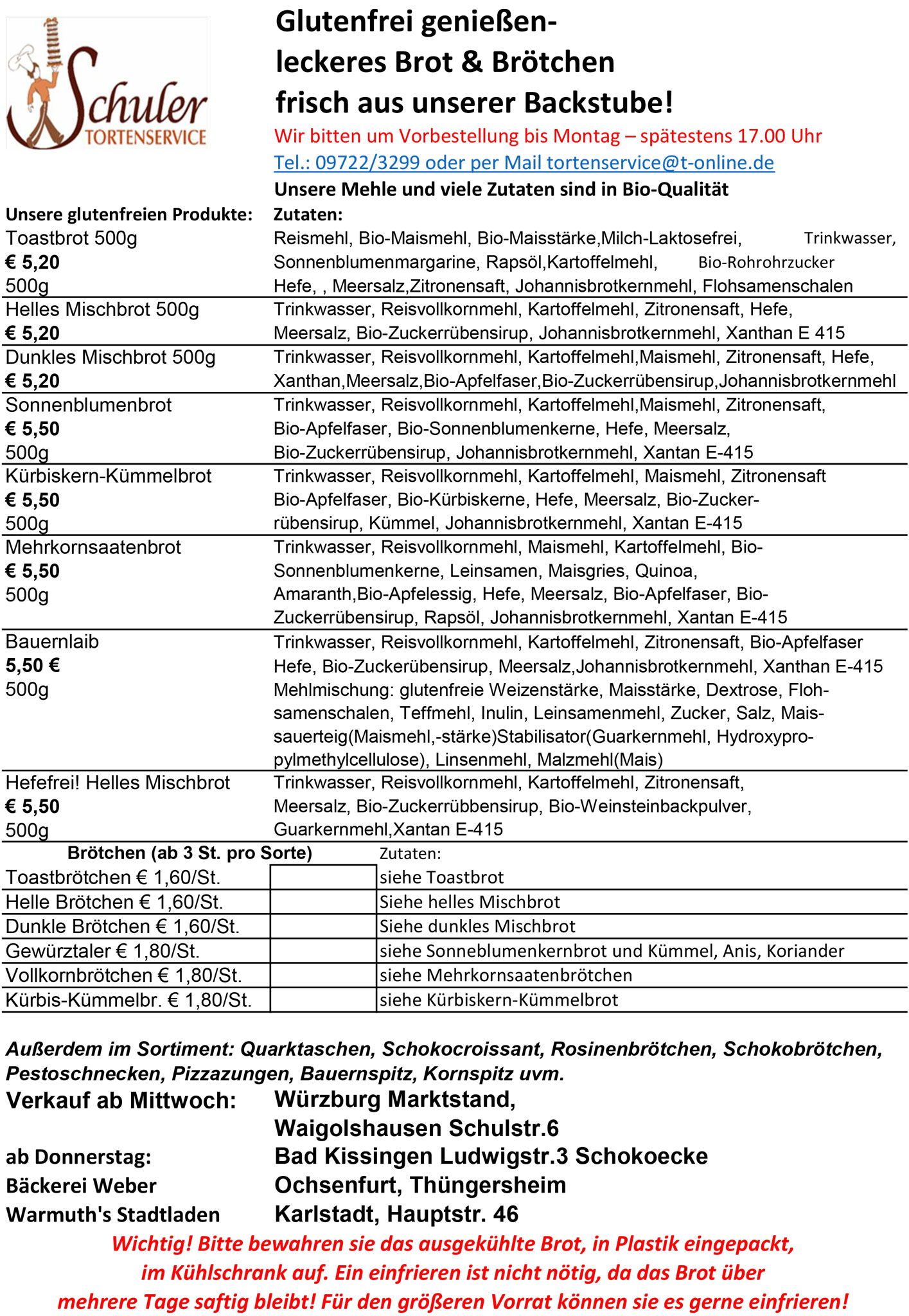 Tortenservice Schuler backt jetzt glutenfreies Brot!