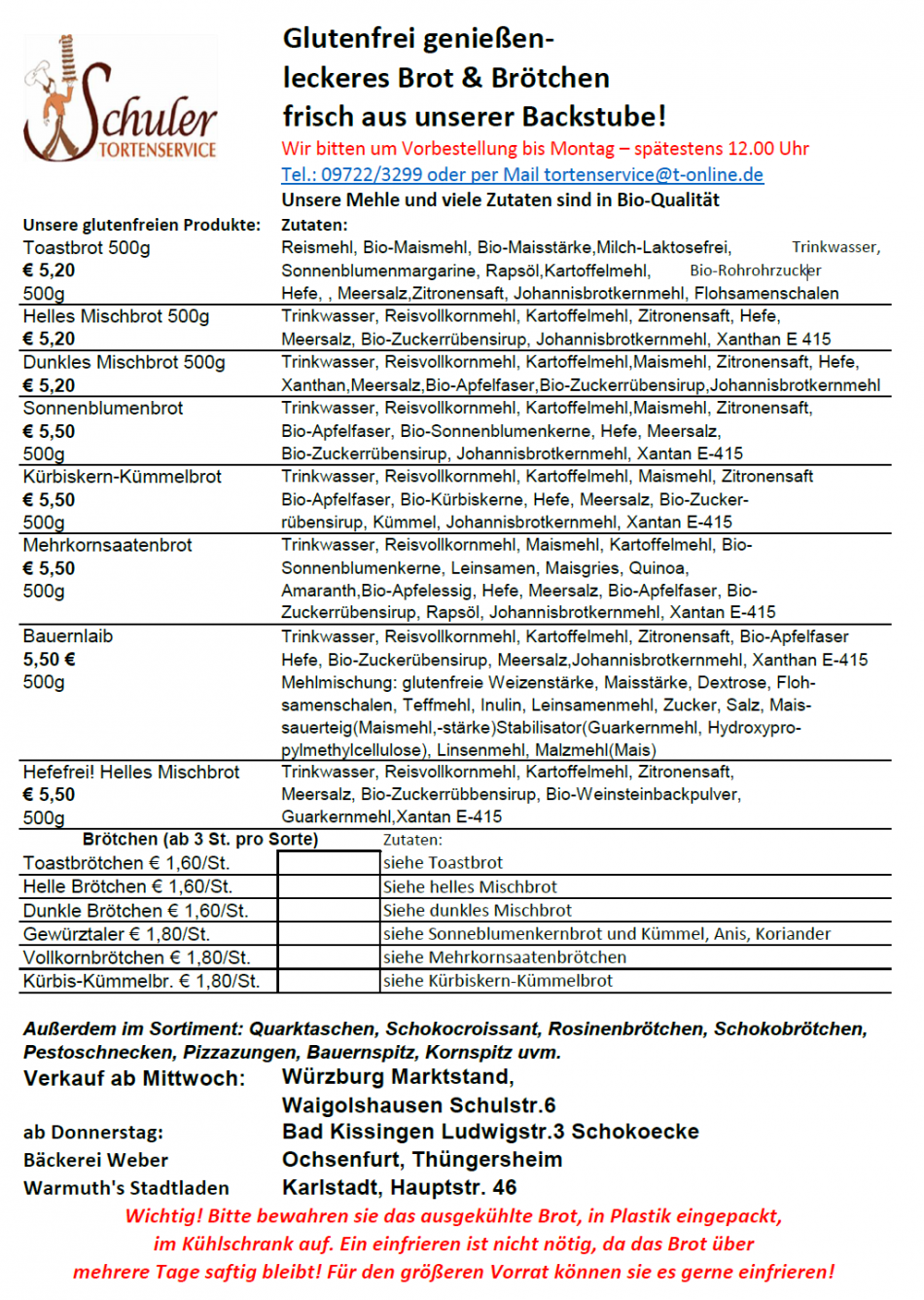 - Waigolshausen, Schulstr. 6 (Backstube) Mittwoch ab 10 Uhr oder am Donnerstag